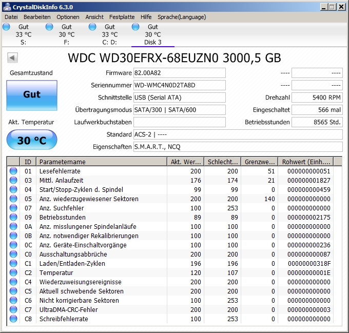 CrystalDiskInfo zeigt mir folgende Informationen :