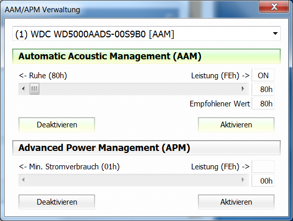 Ich muss dazu sagen, dass die Platte in einem Silentmaxx HD-Silencer eingebaut ist. Allerdings war zuvor auch eine Seagate ST3500418AS kurzfristig darin eingebaut und diese zeigte keine Einbrüche in der Leserate und dabei wurden die Messungen bei dieser noch mit im Hintergrund laufenden Avira Antivir durchgeführt. Das Aktivieren oder Deaktivieren von AHCI und NCQ zeigte übrigens keine Auswirkung auf dieses Verhalten.