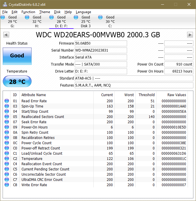 habe einen Intel Rechner, in dem das Betriebssystem (Win 10 64bit - alle Updates) auf eine SSD und die Programm auf einer WD20EZRX Festplatte mit 2 TB liegen. Die WD ist knapp 5 Monate im Einsatz - täglich ca. 3-5 Std. in einem PC.