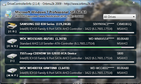 ich habe im Moment zwei HDDs (WD Greens 1,5 und 2 TB), von denen die 1,5er jetzt zwei kaputte Sektoren hat und auch sonst bisweilen zickt. Das System (Win7 Pro 64 Bit) läuft auf ner SSD. Als Ersatz für die kleine WD habe ich mir jetzt eine WD40EFRX geordert (dachte größer kann ja nicht schaden), was vielleicht etwas voreilig war.