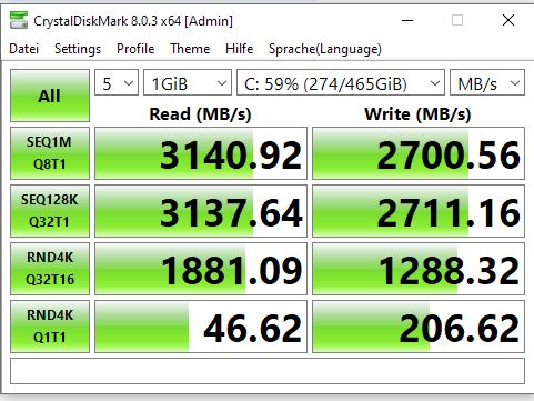 Schreibgeschwindigkeit nur ca. 1200 ( ASSSD ud Crystal )