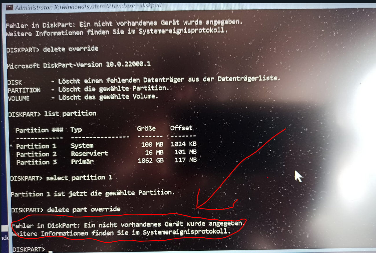Dann es ist mir noch aufgefallen, dass wenn die SSD extern angeschlossen ist kann ich mit diskpart auf die SSD Problemlos zugreifen. Bei internen Benutzung der SSD das Dispart verweigert das löschen einer Partitionen...