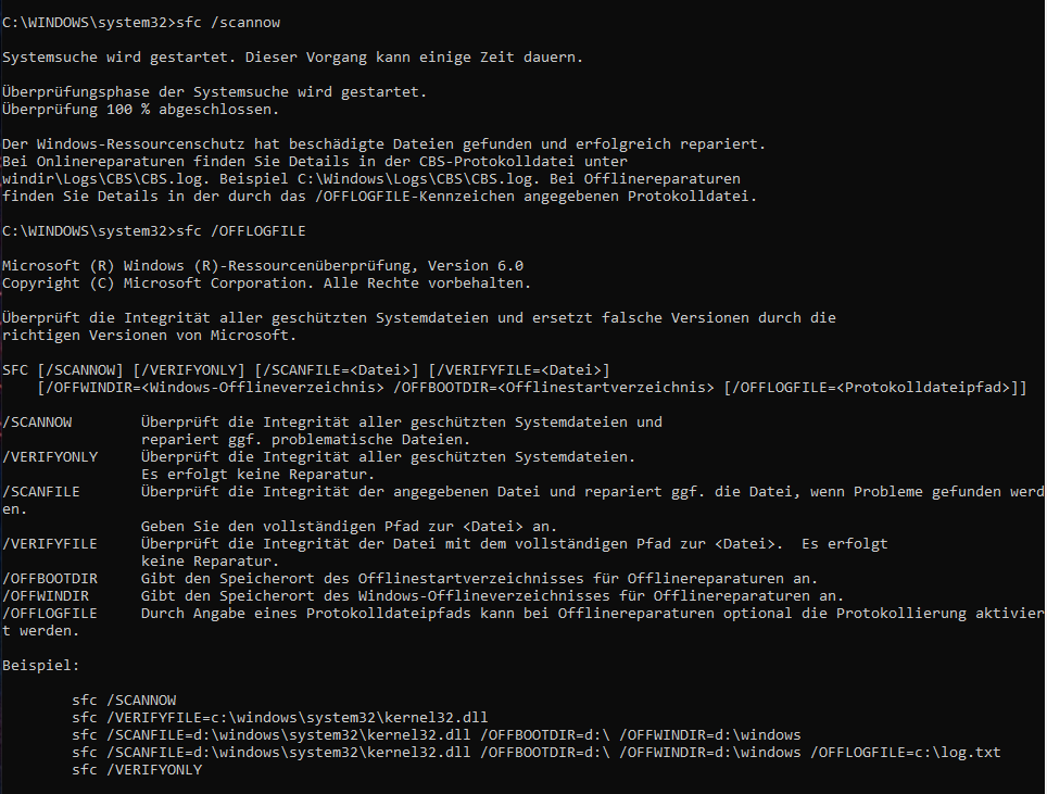 Danach per Admin sfc /scannow ausgeführt,nur weis ich nicht,was ich da machen soll,ist der Kernel32.dll beschädigt?