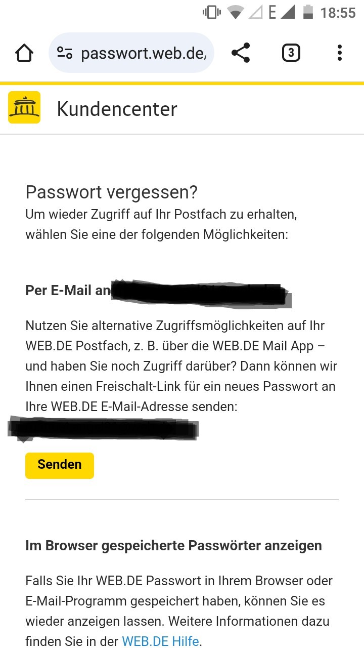 Wenn ich bei Web.de auf neues Passwort erstellen gehe, bringt mir das auch nichts, weil ich nicht mehr in meinem Postfach komme um denn Freischalt-Code zu aktivieren.