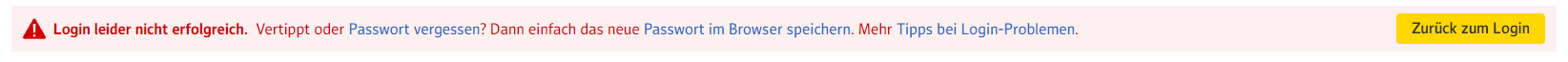 Als Anlage 1 lade ich mal einen Screenshot hoch, wie der fehlgeschlagene Login im Chrome Browser angezeigt wird. Diese Meldung hilft mir aber in keinster Weise weiter. Der versuchte Login wird sofort abgebrochen.