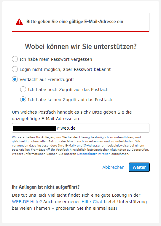 Ich wüsste aber jetzt nicht einmal, wie ich mich an web.de (die haben ja keine Telefonnummer) wegen dieses Problems melden könnte...