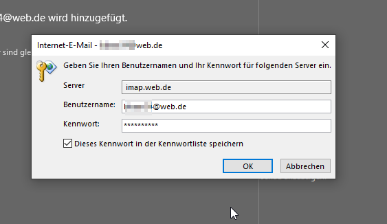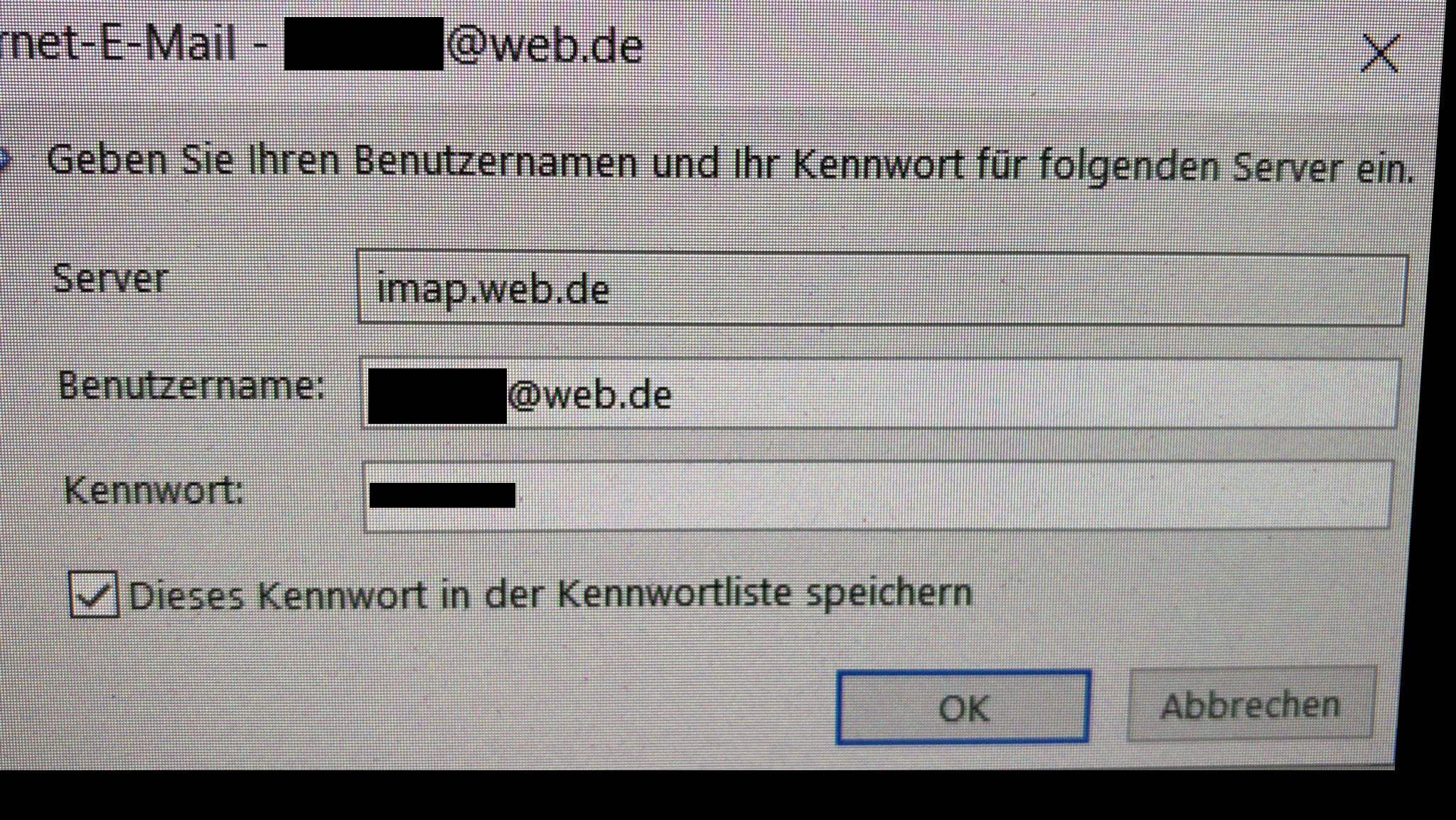 ich bin mittlerweile echt verzweifelt. Ich habe 2 Accounts für Web.de. Beide habe ich auch eingerichtet, wie in der Anleitung von web.de beschrieben war. Ich konnte auch die ersten 1-2 Wochen Mails senden, empfangen etc. Alles lief gut. Dann aber erschien dieses Fenster (Bild im Anhang) und plötzlich geht seitdem nichts mehr.
