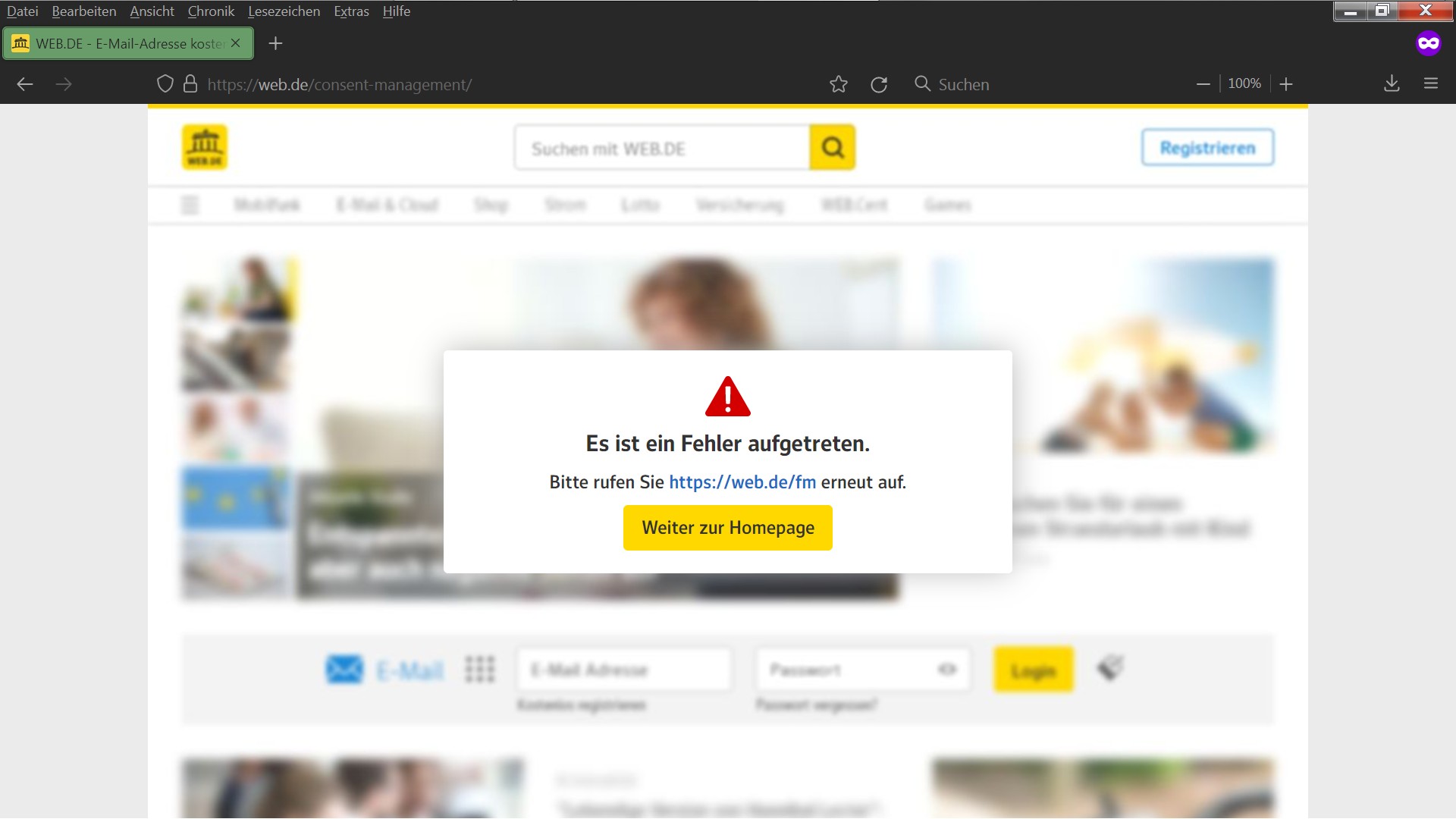 Ich wollte nur kurz nachfragen ob jemand in sein Postfach bei Web.de hereinkommt. Ich versuche mich über das Web-Interface anzumelden, bekomme jetzt seit Tagen bei der Anmeldung nur folgendes zu sehen: