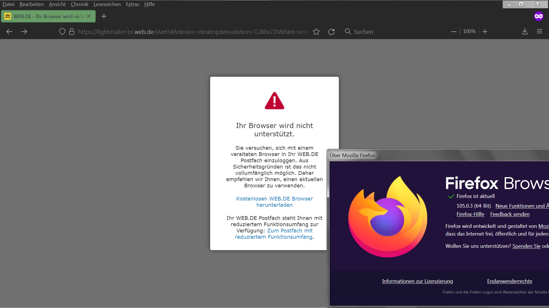 Ich habe auch schon verschiedene Browser ausprobiert doch es funktioniert nicht.