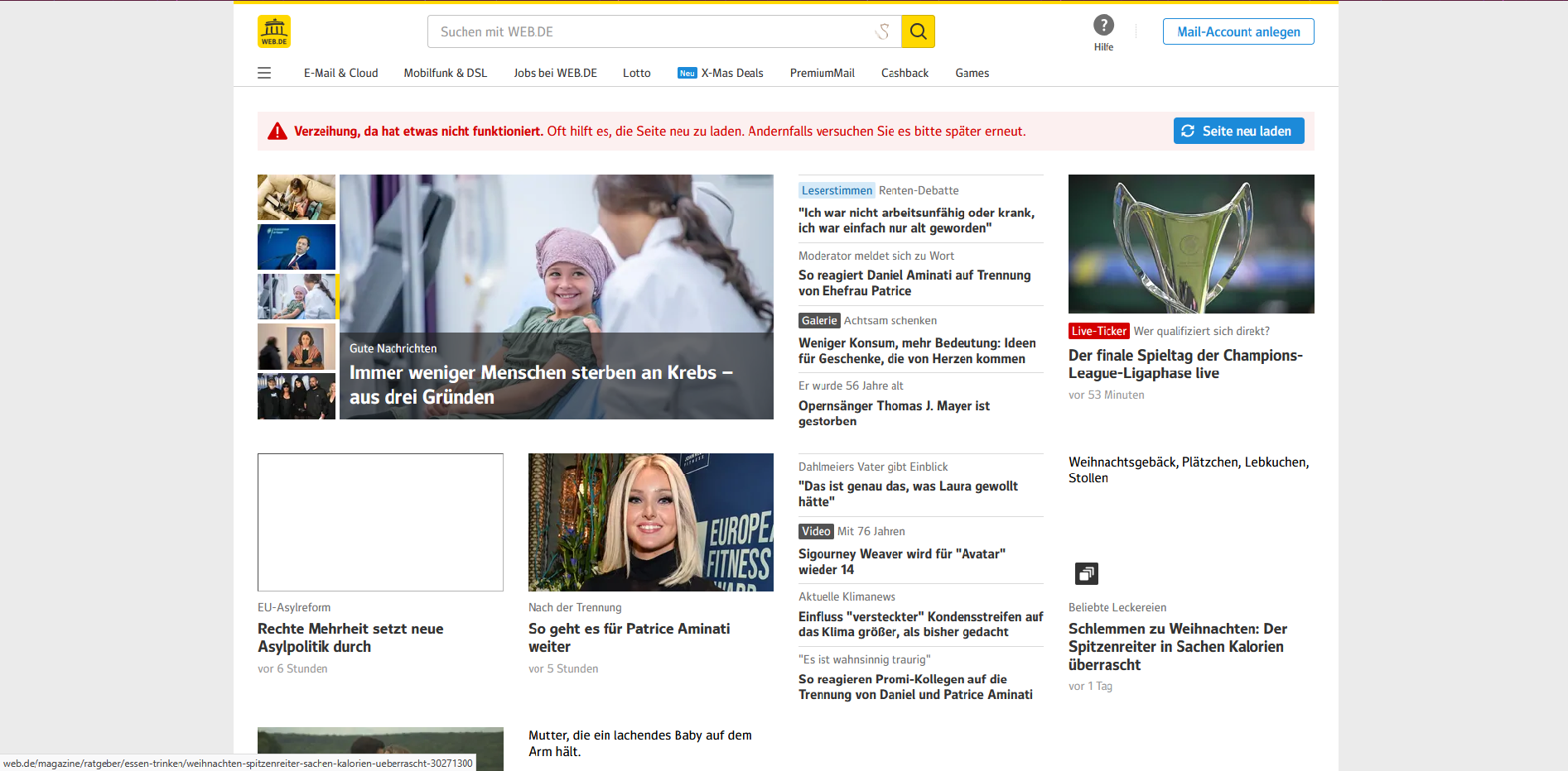 Dann sollte web.de erscheinen, klappt das?