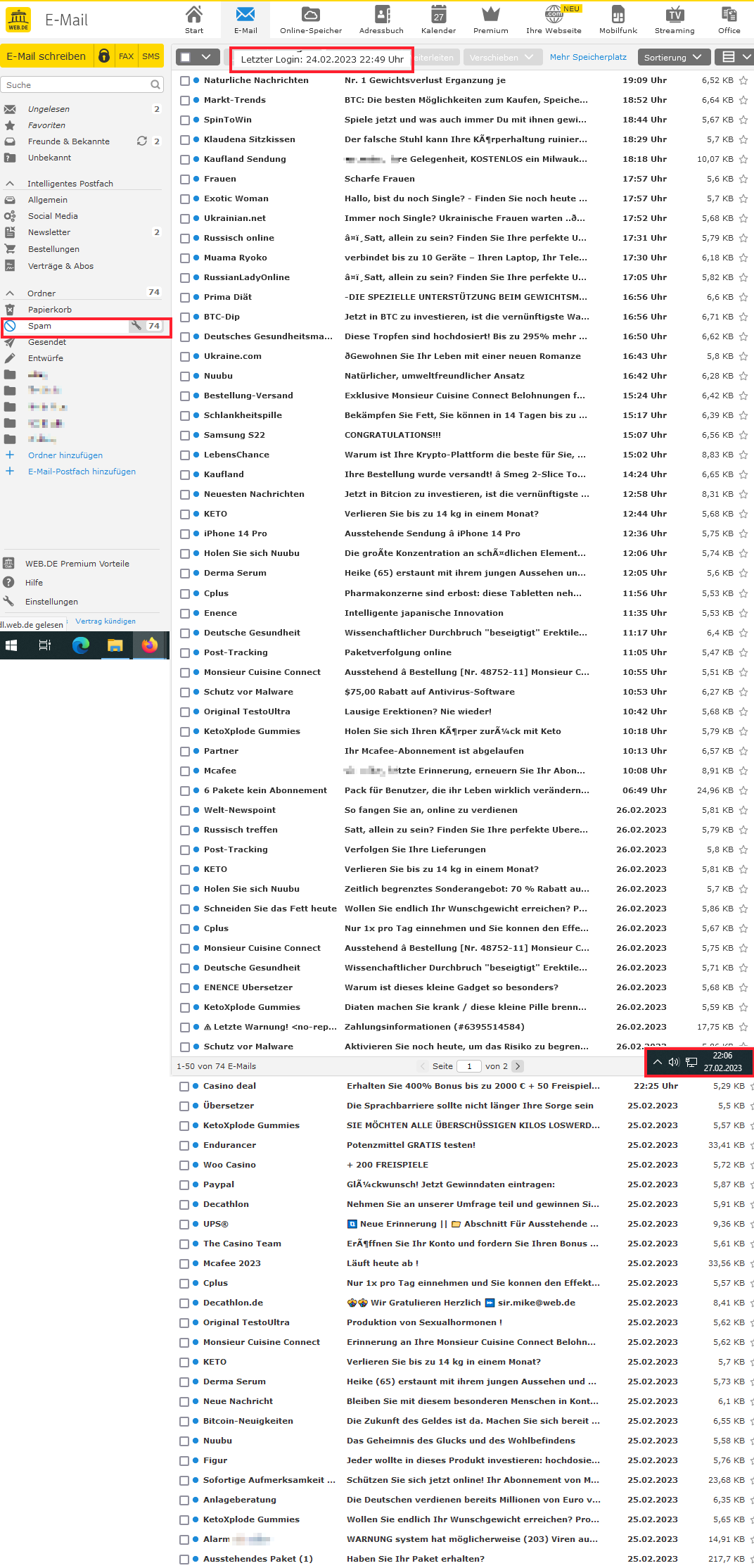 Spammer hatte offenbar lange Zeit keine Interesse mehr gehabt, mein web.de Adresse voll zu müllen