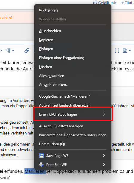 Wer auch immer auf diese kreuzdumme Idee gekommen ist, das so einzurichten, gehört an den Pranger gestellt. Ich würde diese KI ja fast nutzen. Aber nicht so. Und dieser schwebende KI-Button ist auch nervig Hoch 10! Was auch immer die bei der UI Abteilung nehmen, ich würde es absetzen...