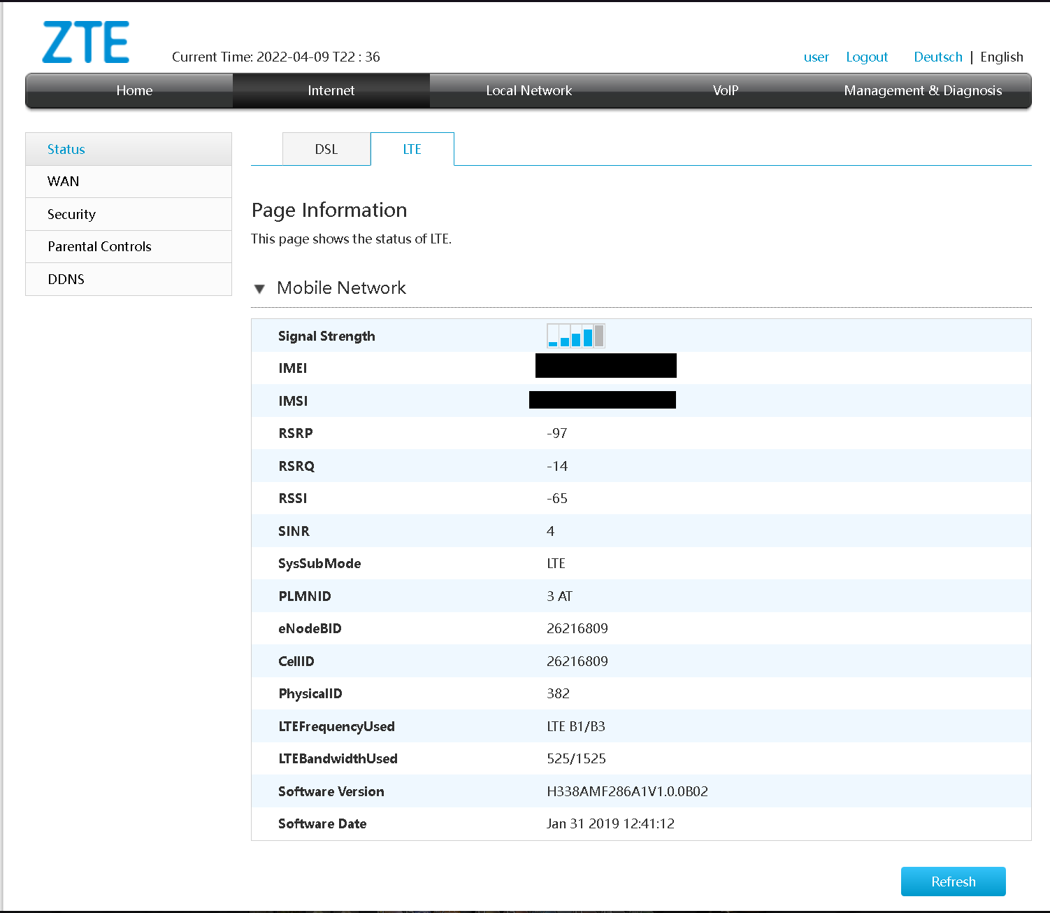 - Internet Anbieter ist "Drei" in Österreich (Hybrid Internet -Kabel und LTE Kombiniert)