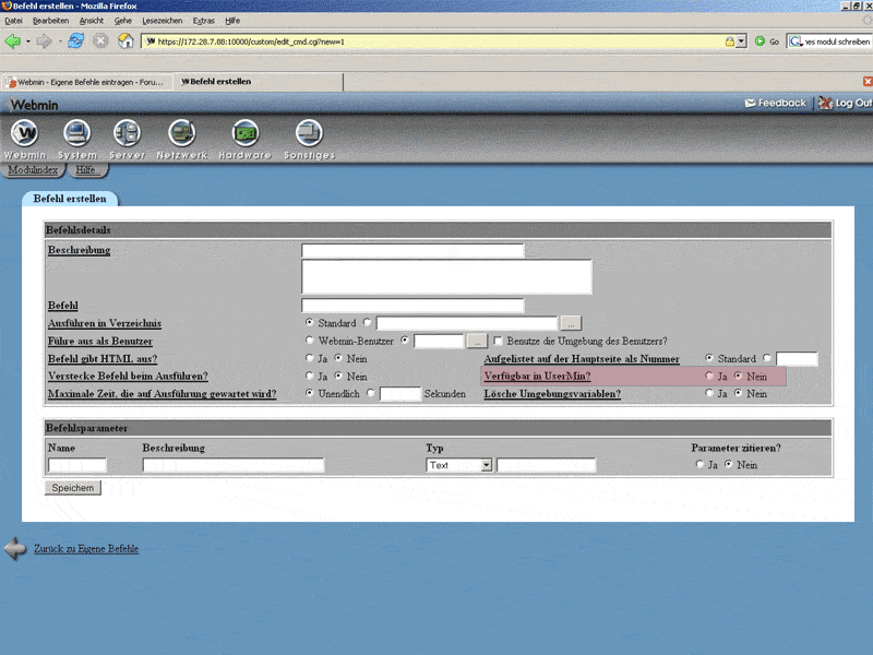 Nun habe ich auch schon Anleitungen gesucht aber keine hat irgendwie folgende Eingabemaske: http://www.sebastianbrandt.com/webmin_eigener_befehl.jpg