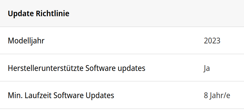 - 8 Jahre Softwareupdates (Bugfixing),