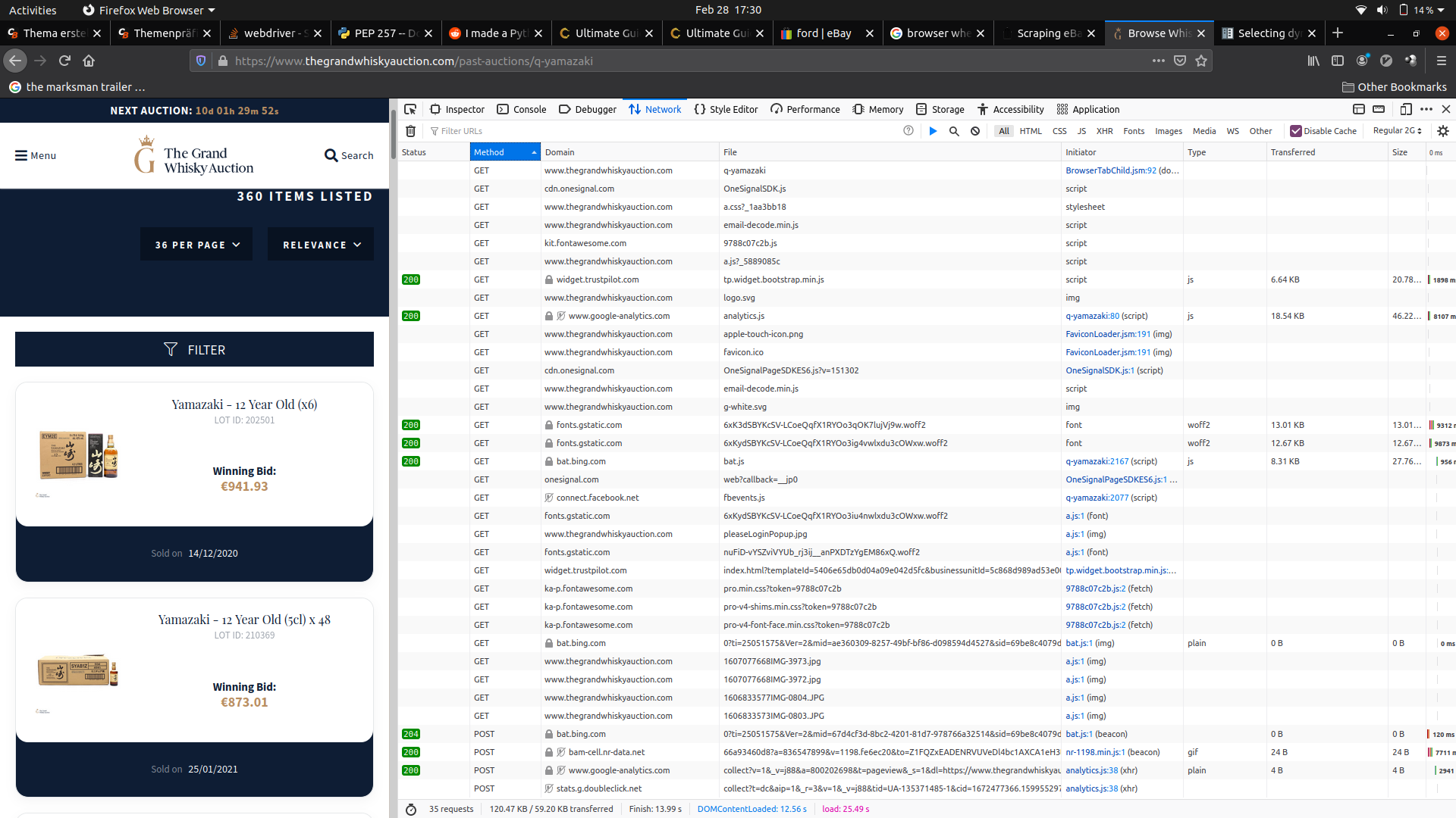 Ich würde also gern erst mal schauen, ob ich die Requests rausfinden und nachbauen kann. Ich hab dazu schon zahlreiche Tutorials gelesen und auf Youtube abgeschaut heute, aber wenn ich dass dann mal auf einer entsrechenden Webseite probieren will, finde ich ums Verrecken nicht den entsprechenden Request.