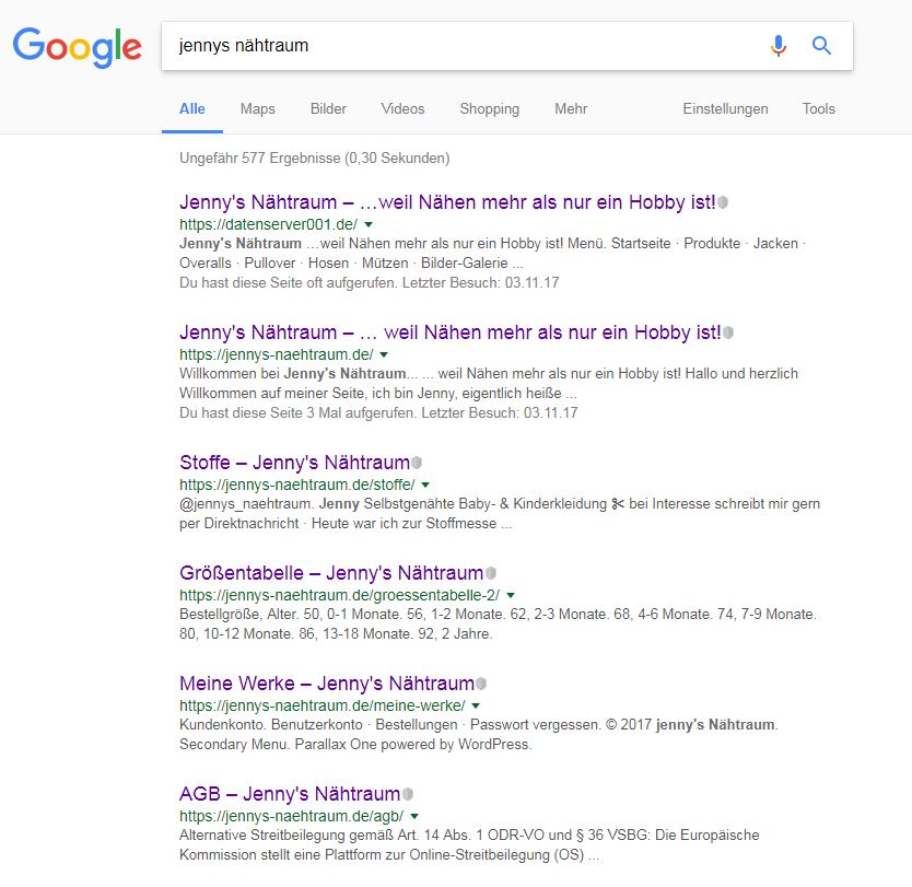Wenn ich jetzt in die Google Suche gehe wird mir immer wieder die alte Domain angezeigt die es aber nicht mehr gibt bzw. dort nix mehr drauf liegt. Wenn ich auf das Suchergebnis klicke wird auch auf die neue Seite Weitergeleitet.