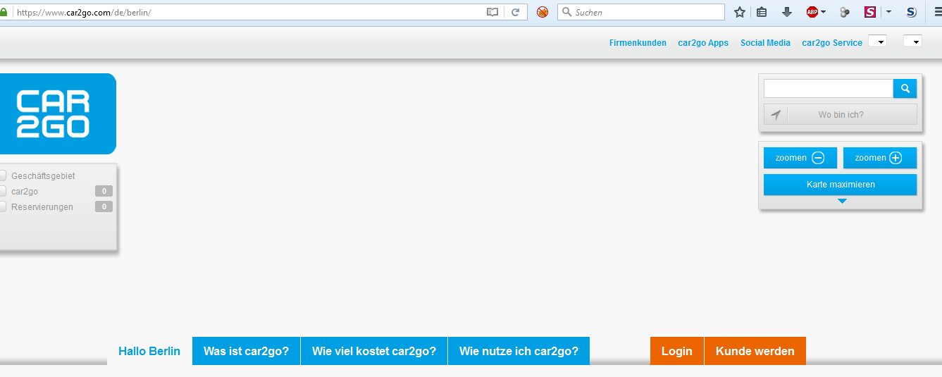 Ich wollte die Seite https://www.car2go.com/de/berlin/ aufrufen, aber die Karte oben wird nicht angezeigt in meinem firefox, welcher mit NoScript läuft. Bisher war es immer so, wenn ich dann "alle Beschränkungen für diese Seite aufheben" klicke, wird die Seite auch angezeigt. Diesmal aber nicht. Bei Opera wird die Seite angezeigt.