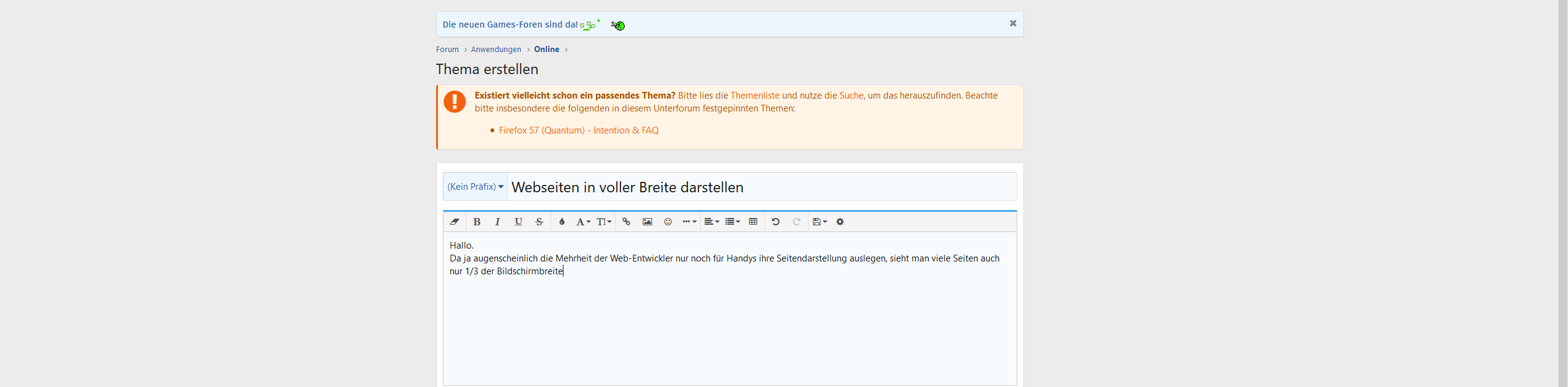Da ja augenscheinlich die Mehrheit der Web-Entwickler ihre Seitendarstellung nur noch für Handys auslegen, sehe sehr viele Seiten schon recht schmal aus.