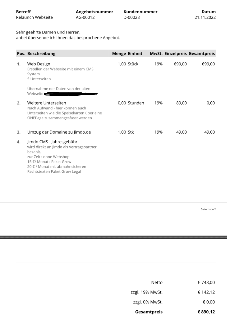 Leistungszeitraum: ca. 2 Wochen nach Auftragserteilung und