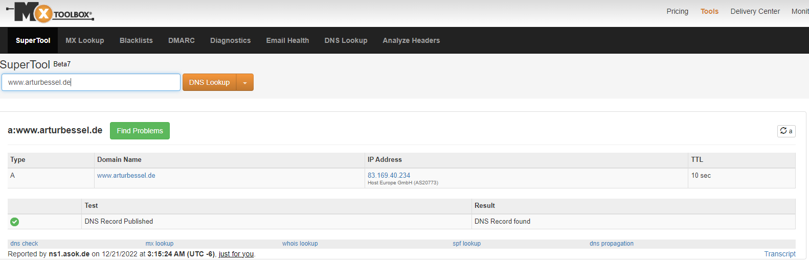 Die Domain (arturbessel.de) wurde bereits durch mich bei checkdomain registriert :