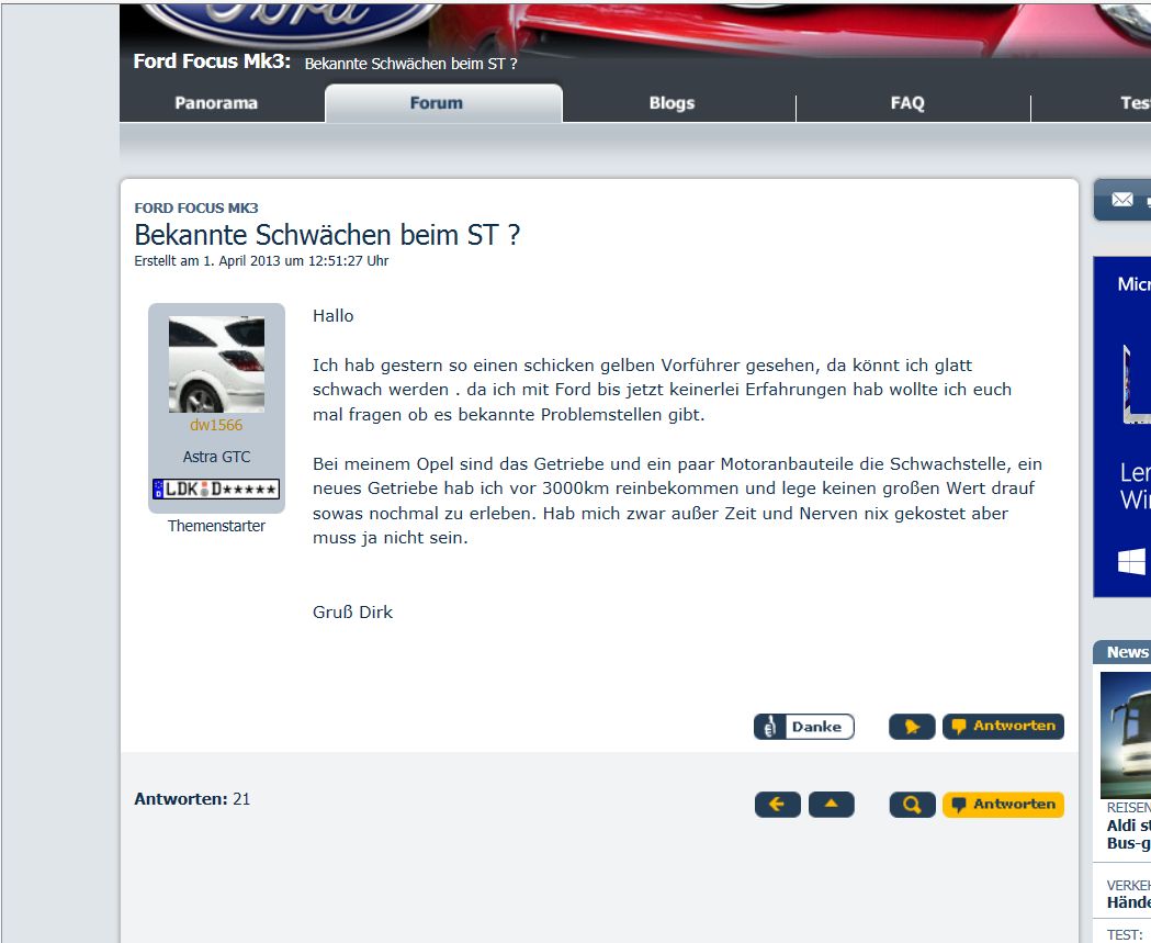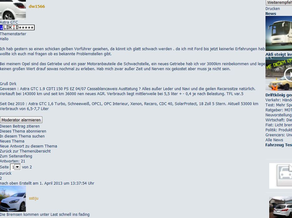 hallo, beim firefox wird die website von motortalk(aber nur diese) nicht so dargestellt wie es normal wäre. dies geschieht allerdings erst dann, wenn ich in ein thema einklicke. dann erscheint alles ungeordnet und der hintergrung ist grau (normal weiß). im ie 10 jedoch ist alles normal.