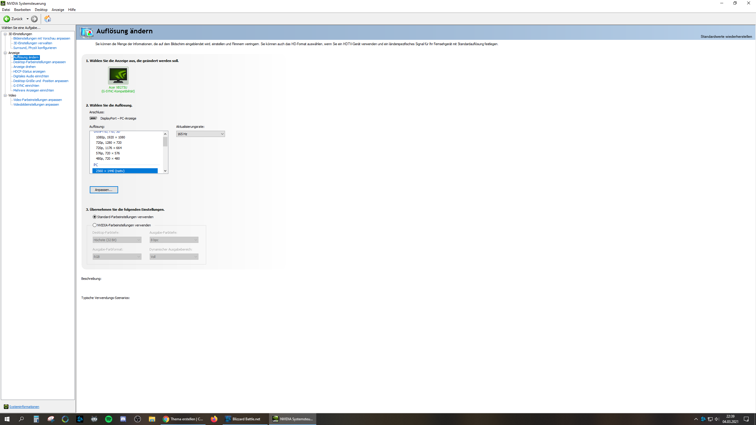- G-Sync deaktiviert