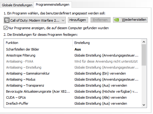 Im Screenshot in Post 21 hast du die Einstellung ja nur für COD gemacht und nicht global, da ist es ja dann kein Wunder das andere Anwendungen diese ignorieren.