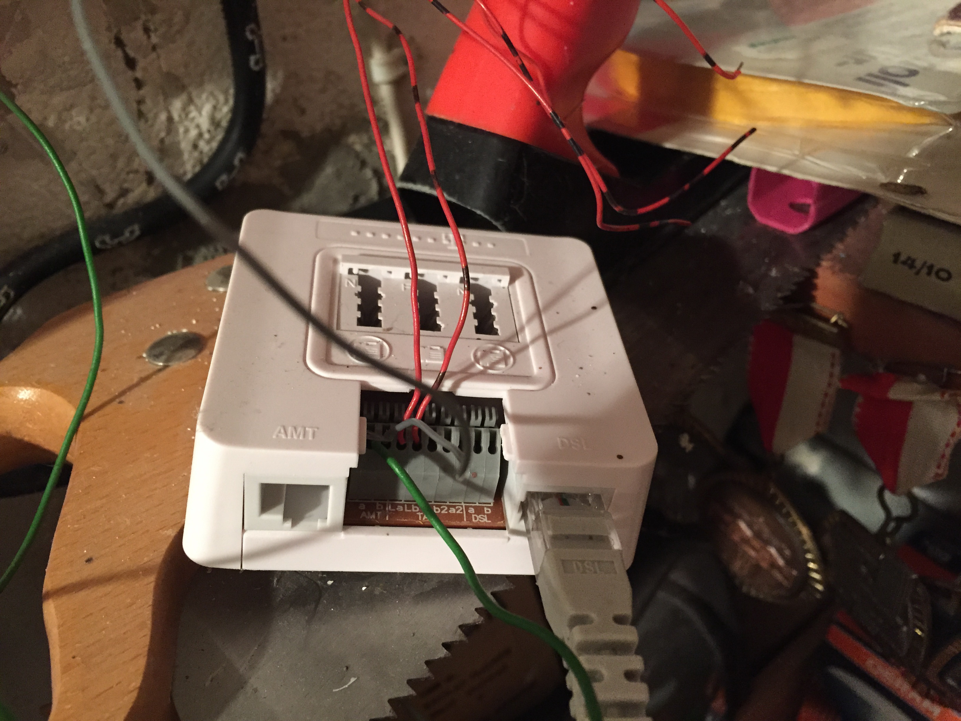 Da sich die 1. TAE Dose im Obergeschoss befindet (daran hängt zurzeit noch die Gigaset Basisstation) und es zu Problemen kam, wurde der Hausübergabepunkt damals bei der DSL Einrichtung aufgeschraubt und direkt an den Klemmen Amt a/b des Splitters angeklemmt (grünes Kabel an a, graues an b). An Splitter La und Lb hängt, wenn ich richtig verstehe, die 1. TAE Dose.