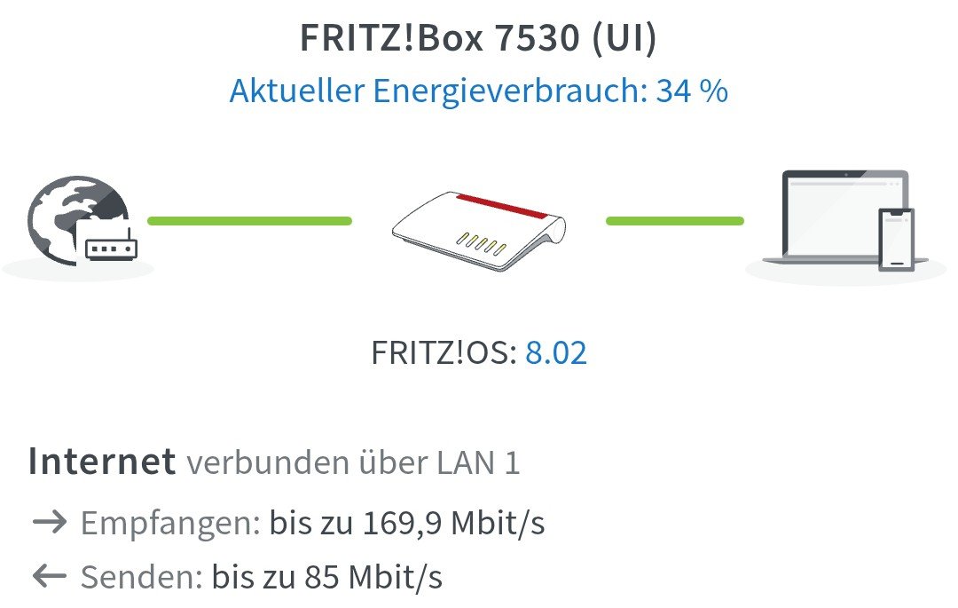 Ist halt ein wenig doof das man sich die Anschlussgeschwindigkeit nun nicht mehr in der Fritzbox anschauen kann, da die eigentliche Internetverbindung ja vom ONT aufgebaut wird und die Fritzbox nur über WAN an selbigen angeschlossen wird.