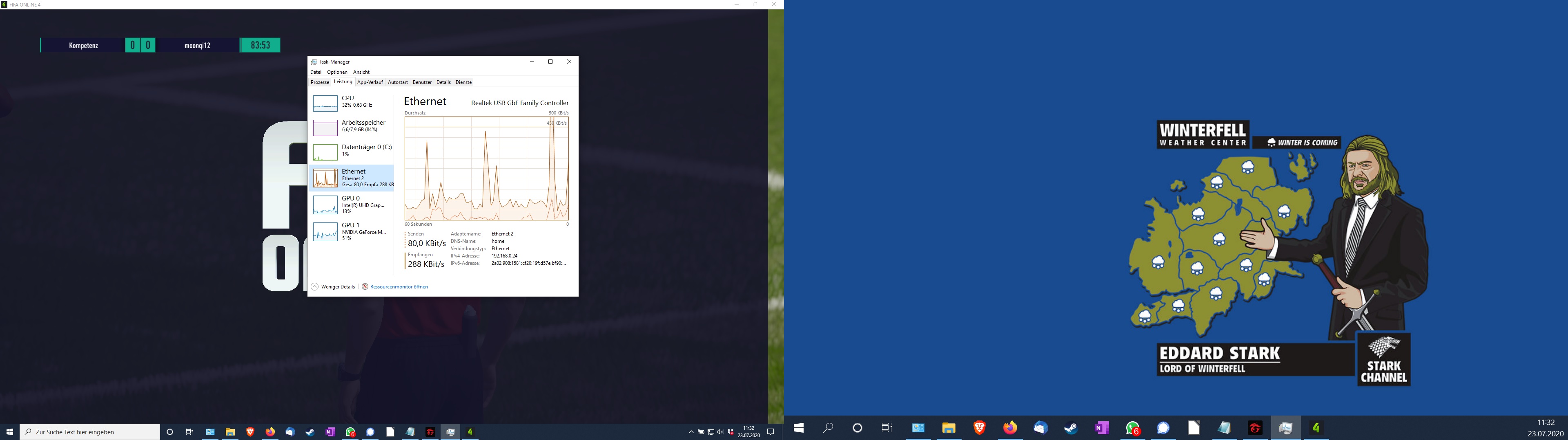 Wenn ich Fifa Online 4 spiele, läuft das Ganze flüssig, sobald ich aber online Spiele, habe ich fast immer sofort (manchmal auch erst nach 2-3 Minuten) Lags des Jahrhunderts und Delay von mehreren Sekunden. Pingtests sagen mir, dass bei meiner Internetleitung nicht das Problem liegt und jetzt kommt das Verrückte: Zwinge ich meinen Rechner bei Fifa die Onboardgrafikkarte statt der dedizierten zu nutzen, muss ich zwar die Details herunterschrauben, das Spiel läuft aber stundenlang online absolut flüssig. Weiterhin war ich in der vergangenen Woche bei meinen Eltern zu Besuch und habe dort das betroffene Spiel mit der dedizierten Grafikkarte mehrfach ausprobiert und alles lief tadellos, kein einziger Lag. Sowohl hier als auch bei meinen Eltern bleiben die Temperaturen meines Rechners alle in einem normalen Bereich (ermittelt via HWInfo). Daraus schließe ich, dass in irgendeiner Form meine Grafikkarte (MX150) eine negative Wechselwirkung mit meinem Router / Provier / Internet hat und das ganze System sich an irgendetwas aufhängt. Kann das sein?!