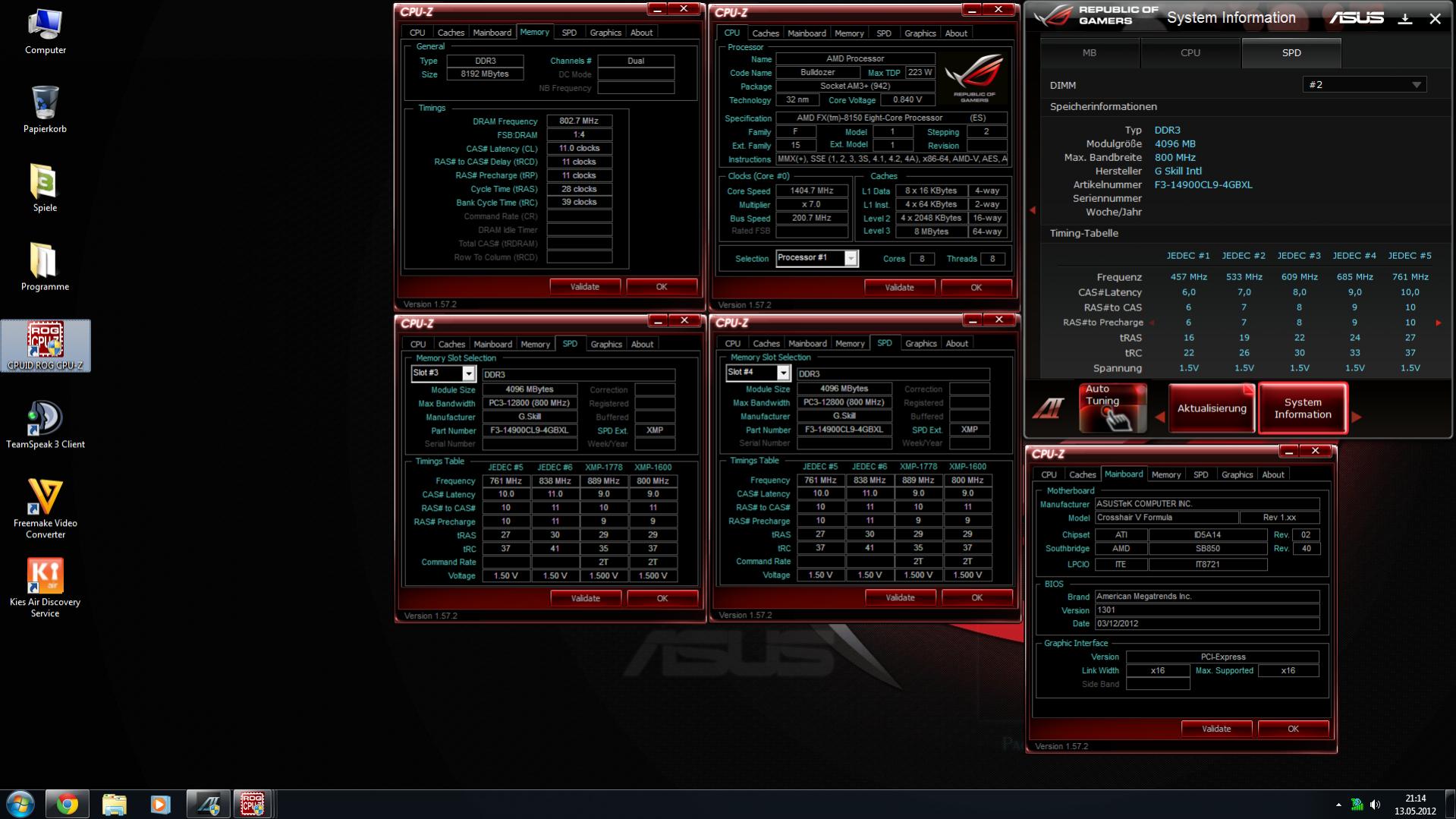 Ich besitze ein AMD FX-8150 der auf ein Asus Crosshair V Formula sitzt.