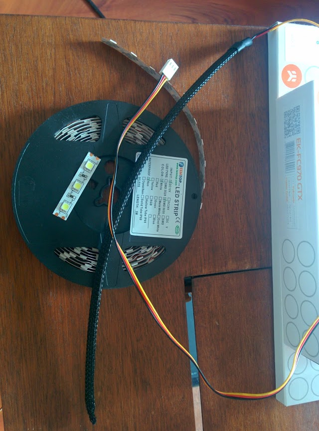 Man nehme 5 Meter Stripes aus der bucht Drähte mit Stecker (4pin molex, lüfter, was auch immer), ein Lötkolben und 5 min Arbeit. Damit bekommst du individuelle längen und kannst dein Licht gestallten wie du magst. Meine hab ich dann noch gleich in einem sleeve versteckt so fallen die im ausgeschalteten zustand nicht auf.