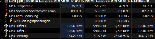 Die 5070 Ti GameRock startet mit um die 1300 Umdrehungen. Und das auch noch mit brummigem Charakter. Bedeutet: Trotz des fetten Kühlers ist sie nicht leise. Wer es leise mag, greift dort NICHT zu.