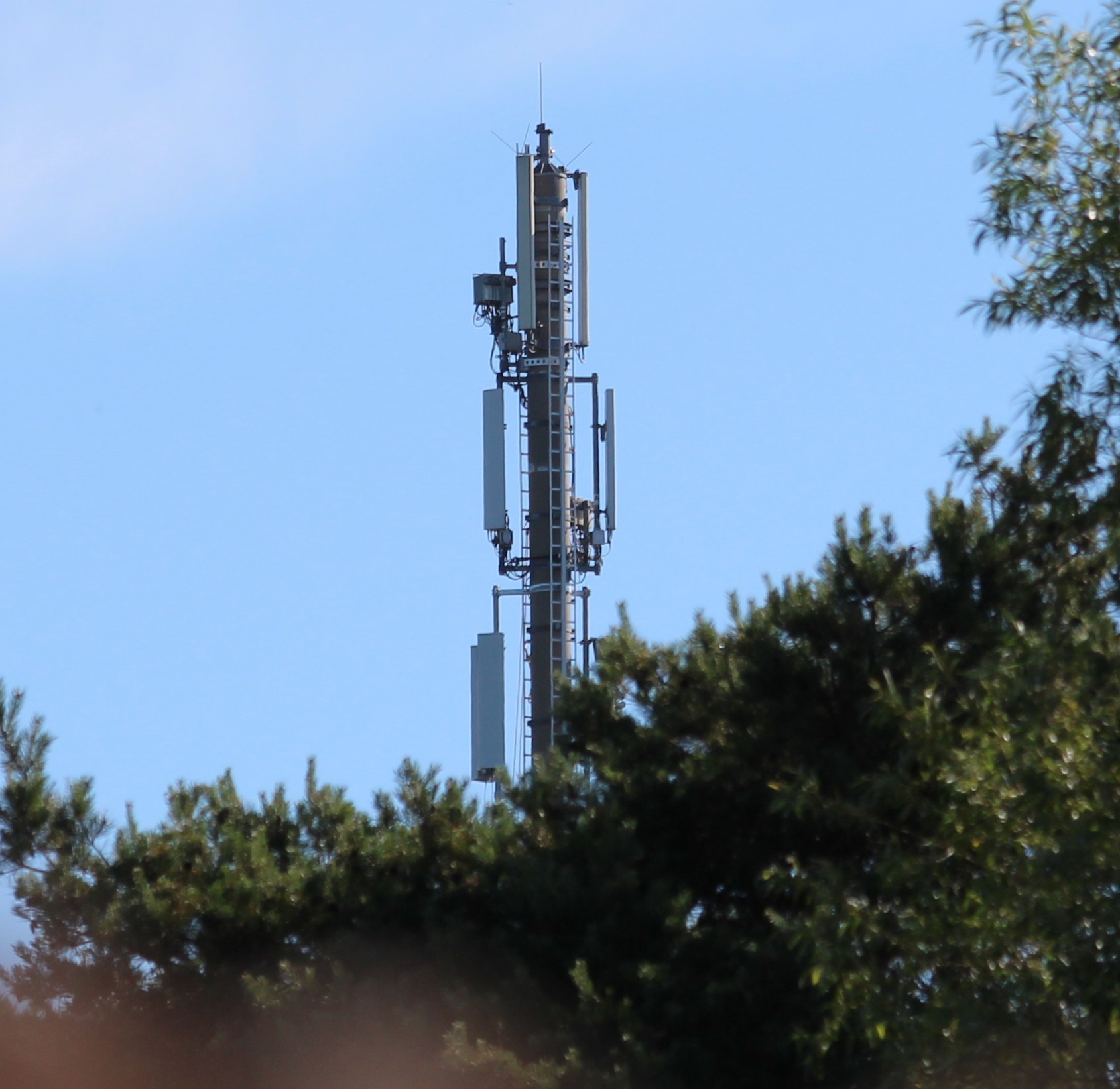 Im Jahr 2020 wurden an dem Telekom-Turm bei uns im Dorf Antennen von Vodafone angeschlossen. (Die unterste Reihe, siehe Foto).