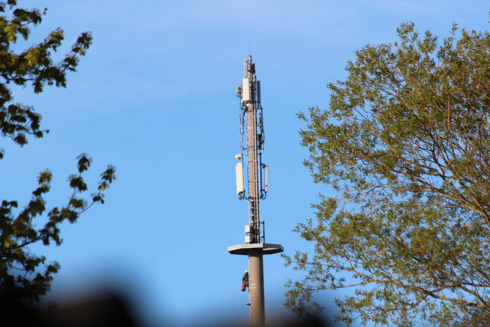 Seit gestern gibt es bei uns im Dorf wieder keinen Empfang mehr. Und siehe da: Am Turm wird wieder gearbeitet. Allerdings sind kleinere Antennen angebaut worden und momentan fehlen noch einige an anderen Stellen.