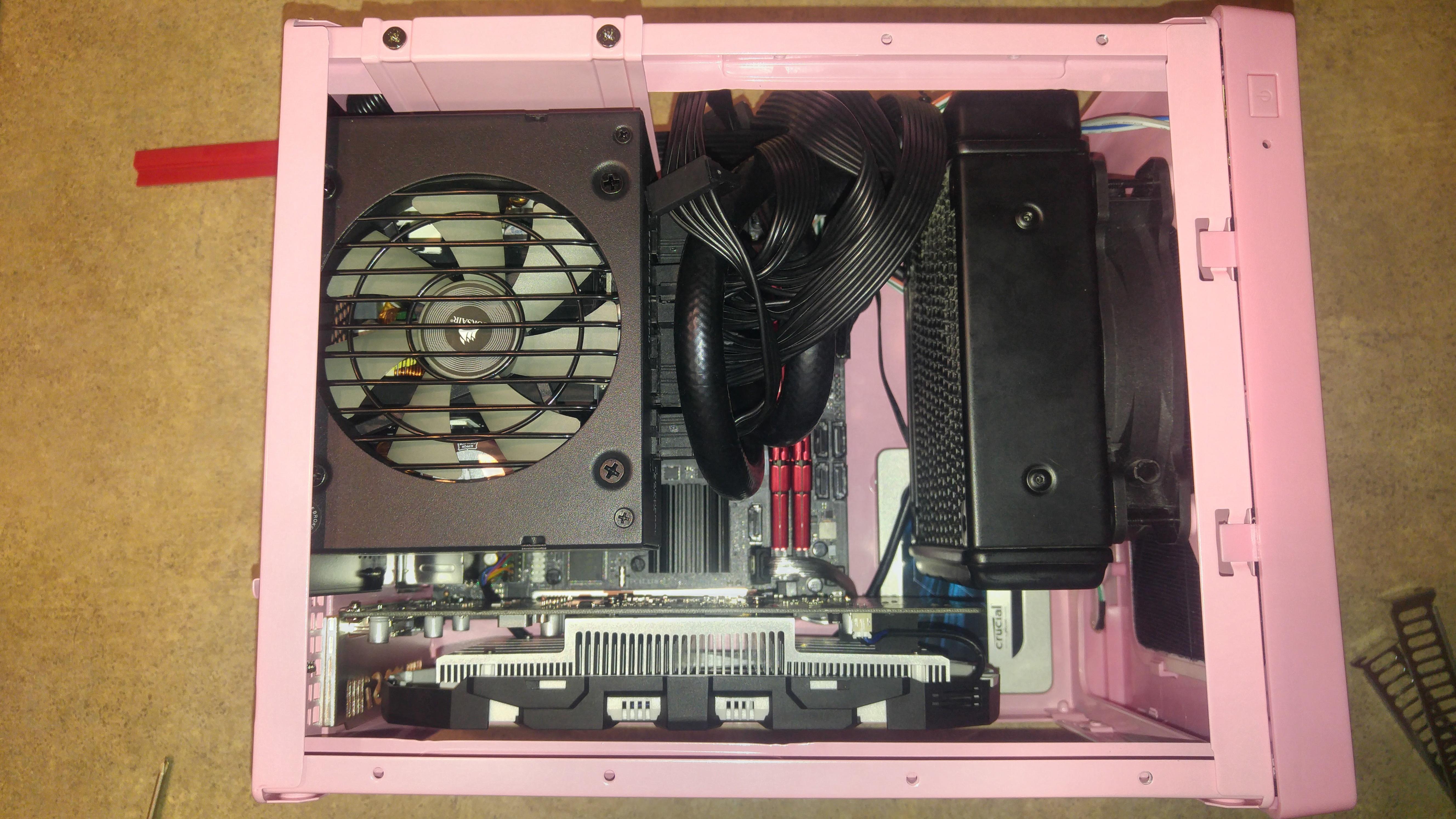 Hier ein Bild wie mein Wunschgehäuse mit bereits verbauter H60 und SFX-Netzteil verbaut aussieht: