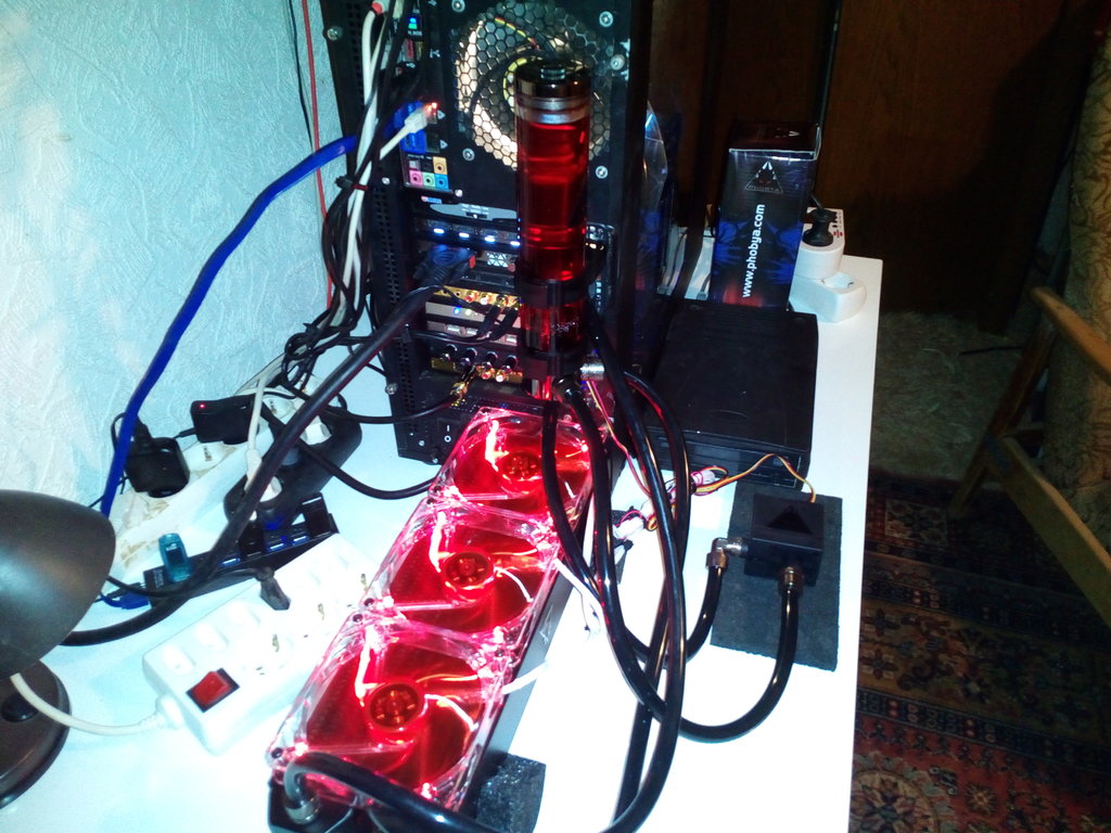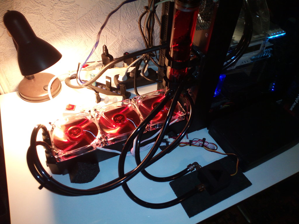 Allerdings musste ich Radiator, Ausgleichsbehälter und Pumpe, extern montieren, da in meinem PC kein Platz mehr ist.