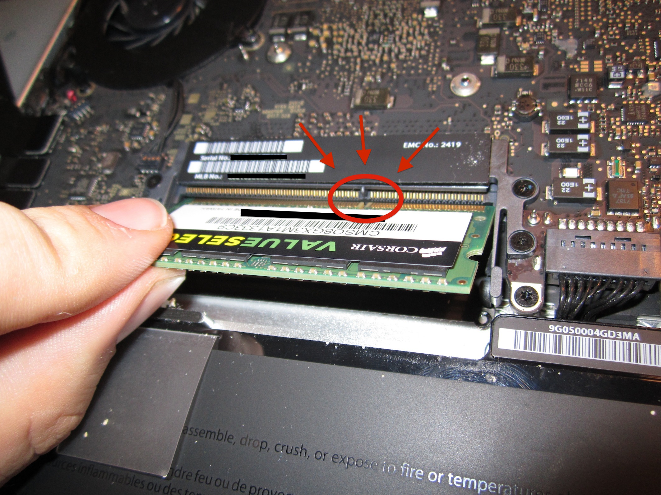 seitlich der ramslots sind zwei kleine hebelchen, diese aufklappen, dann den ram in den ram-slot drücken, fest, aber nicht mit gewalt. und anschauen, wo die kerbe im ram und im slot ist!