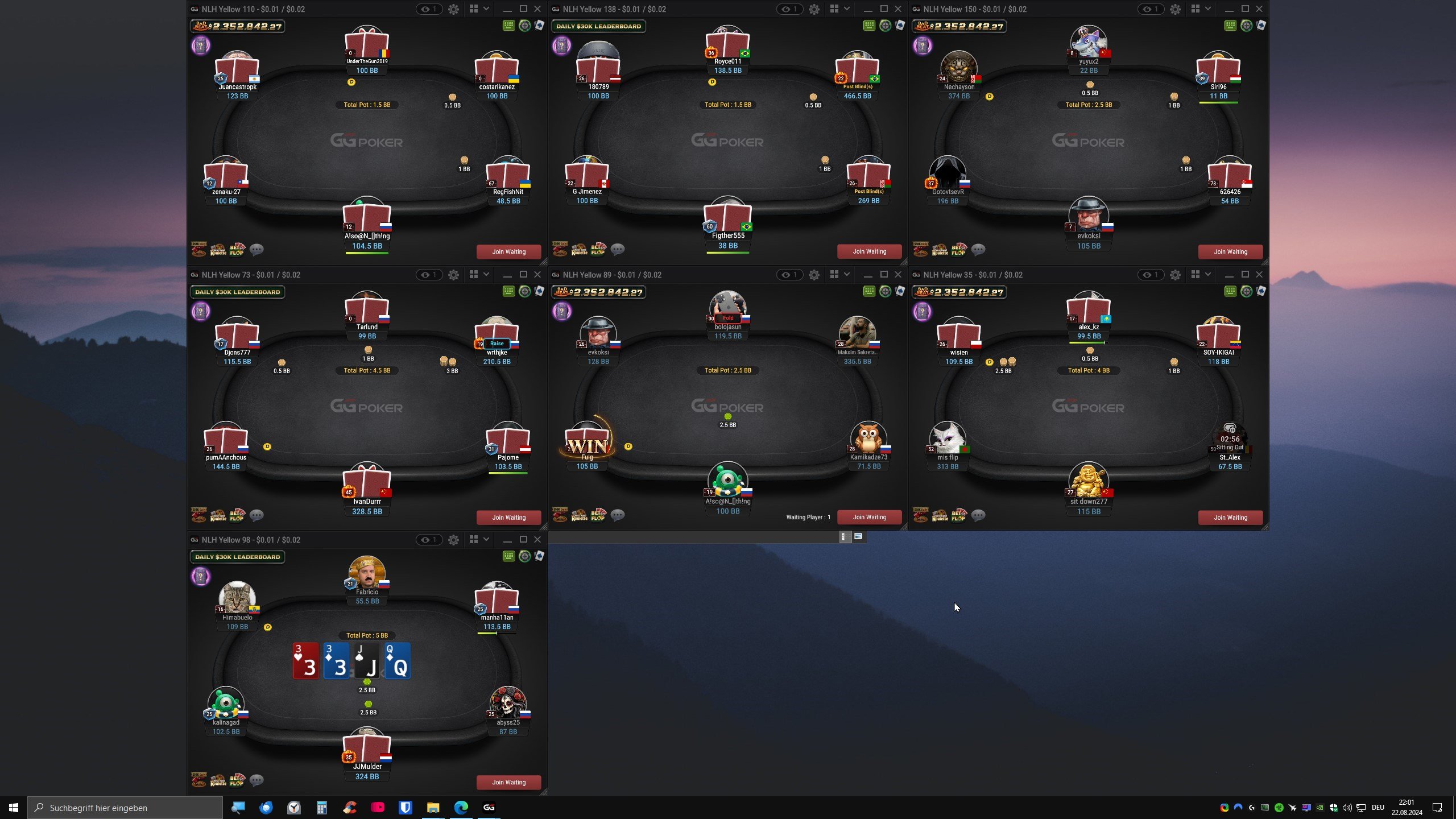 Nun hbae ich die Leidenschaft zum Pokern entdeckt und spiele zwischen 6-10 Tischen gleichzeitig.