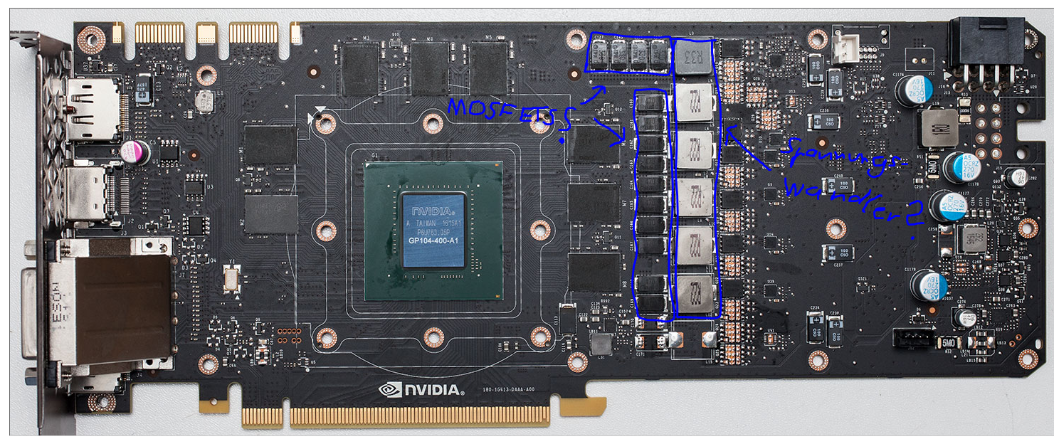 Ich würde gerne wissen, welche Bauteile der Grafikkarte besonders heiß werden und ein einfacher Luftstrom nicht ausreicht um diese zu kühlen und desshalb Heatsinks benötigt werden.