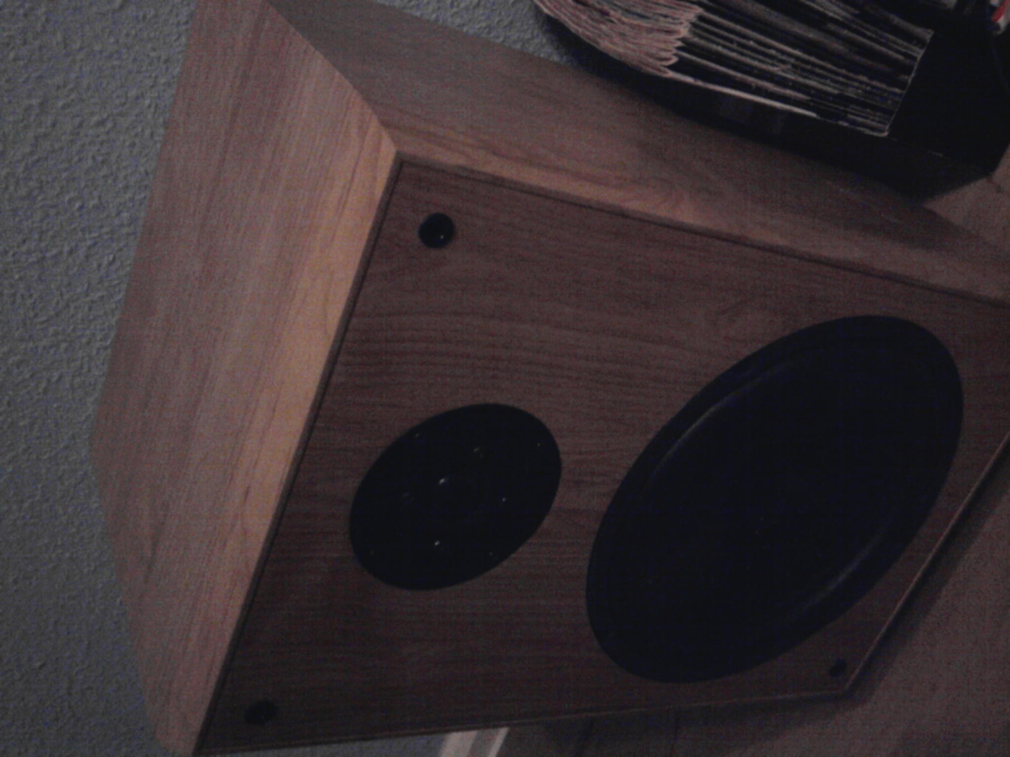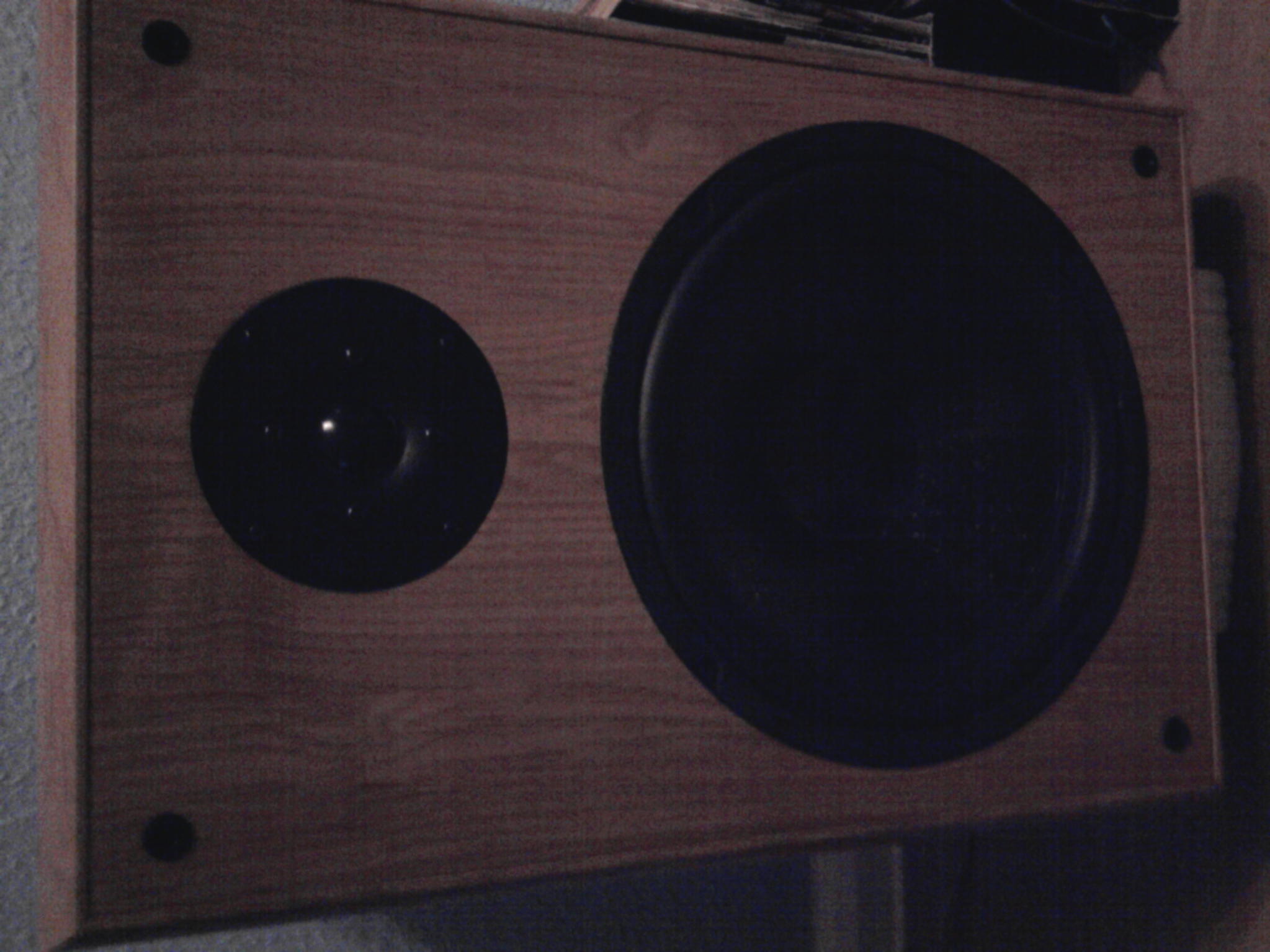 Die Boxen sind ca. 33cm breit, 31 cm tief, 48 cm hoch und haben eine helle Holzmaserung die nach vorn und hinten abgerundet ist.