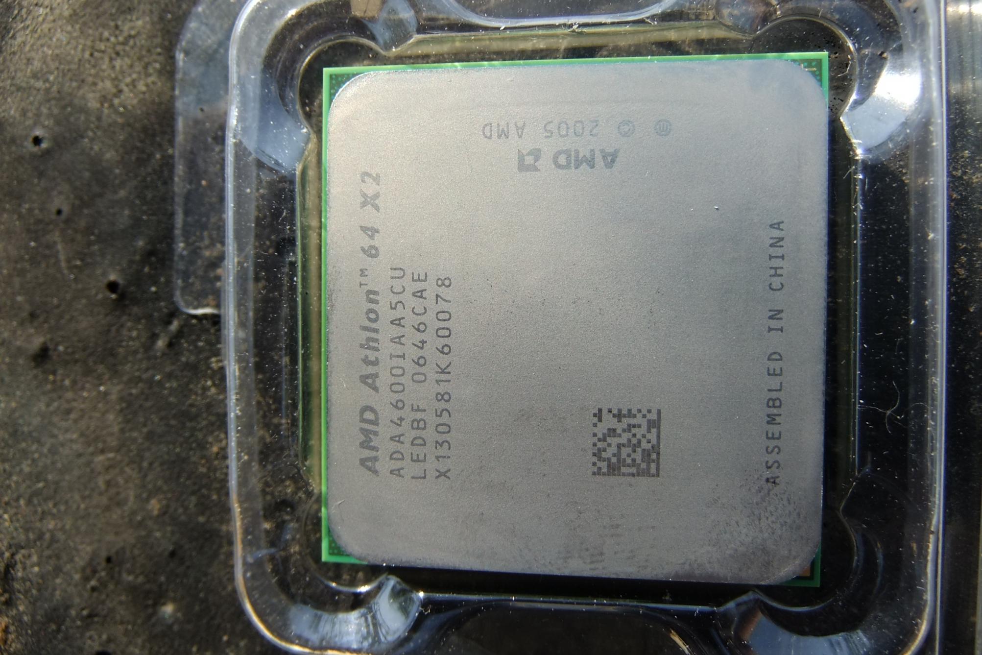 Ich würde sagen ein AMD Athlon X2 4600+, da die Zahl in der ersten Buchstabenreihe steht und als einzige für eine Modellnummer Sinn ergibt.