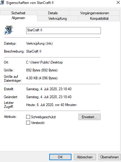 Wegen der Verknüpfung noch mal: Dein neues Bild zeigt an wo die liegt. Du müsstest da auf den Reiter Verknüpfung gehen. Dort sollte dann der Pfad stehen. Du könntest auch noch mal links per Rechtsklick auf den Windows Button klicken und dann auf "Disk Management" (vermutlich "Festplattenverwaltung" oder ähnlich auf Deutsch) klicken. Da kannst du dann auch mal ein Screenshot von machen (oben und unten), damit man sieht, was die SSD ist und was die HDD ist. Außer du bist dir sicher, dass du auf die SSD Windows installiert hast. Dann brauchst du kein Bild machen. Denn dann sollte C: die SSD sein.