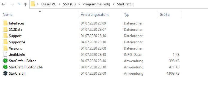 Dein Bild zu Starcraft sind nur Verknüpfungen. Du müsstest mal die Starcraft II Verknüpfung mit Rechtsklick und dann Eigenschaften öffnen. Da siehst du dann den richtigen Pfad. Wenn du aber alles auf Standard gelassen hast bei der Battle.net Installation, ist es vermutlich in der Tat auf der SSD installiert.