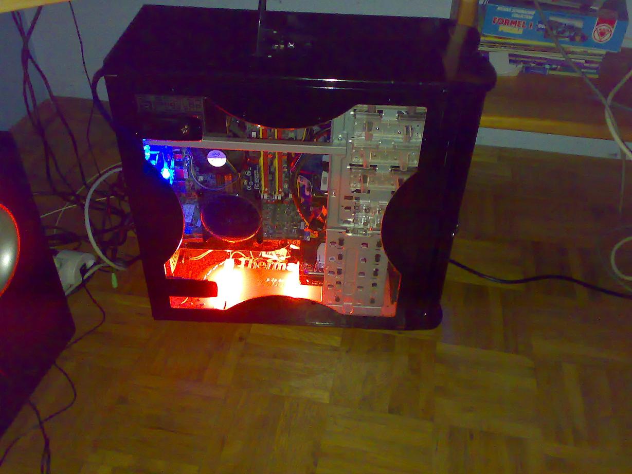 es war anfangs grau und schlicht. jetzt habe ich es schwarz lackiert und ein window drangemacht ( hab ein ziemlich lsutiges prinzip. das window ist mit klett festgemacht und kann so jederzeit geöffnet werden). das window dient komplett als seitenteil, sodass man fast alles außer den rändern sehen kann. habe den blau leuchtenden cnps 9700led drin. nun meine frage: welche länge sollten die kathoden in so einem case haben?? wieviele kathoden?