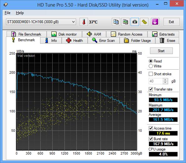 Der sieht auch komisch aus, so sieht die ST3000DM001 aus, die 1TB Plattern und damit garantiert kein Short-Stroke hat: