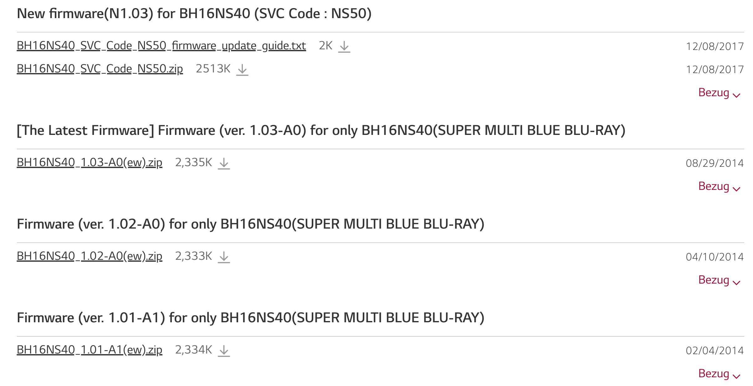 If SVC Code of BH16NS40 which you have in not NS50,the firmware is not updated.