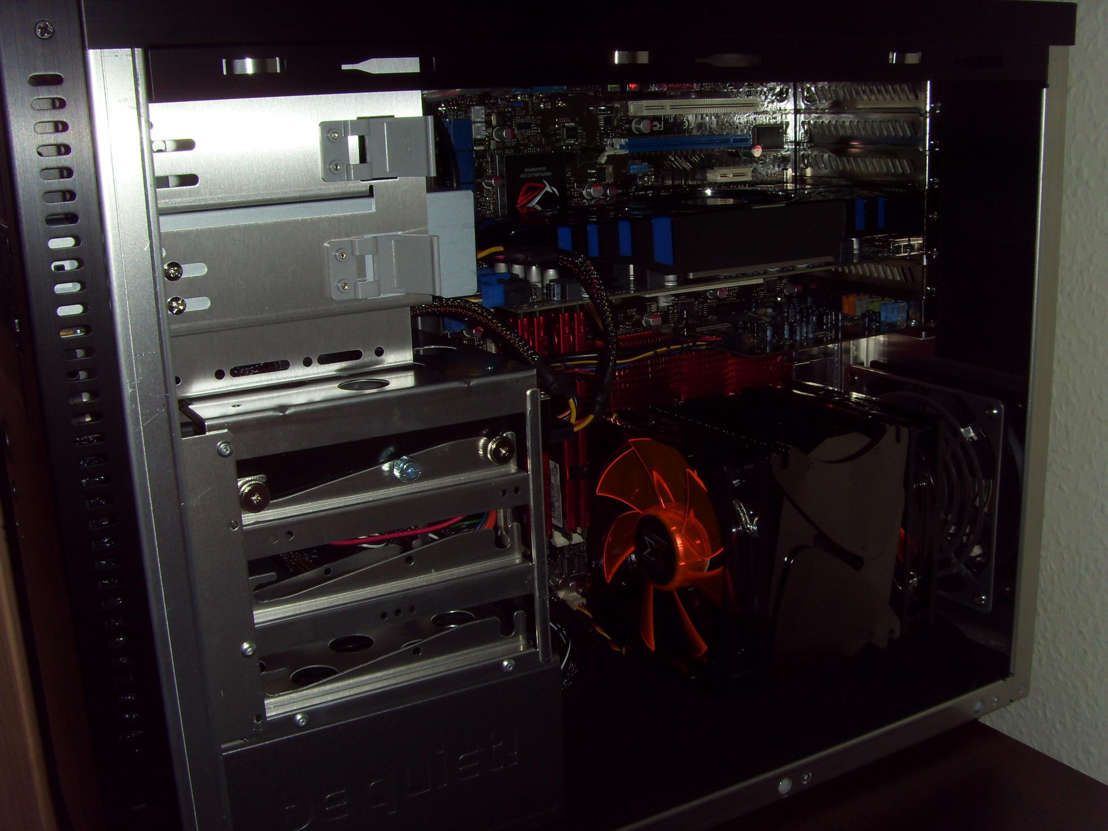 Ich habe irgendwie bedenken zwecks der Gehäusebelüftung die man vllt noch etwas optimieren könnte. Ich möchte die Lüfter über eine Lüftersteuerung Zalman ZM-MFC1 Plus regeln. Ich habe hinten neben der CPU einen 120mm Lüfter der schon bei dem Lian Li Gehäuse dabei war. Dann habe ich noch einen 140mm Lüfter Oben (Deckel) der blässt noch Luft ins Gehäuse. Und einen 120mm von Lian Li in der Front wo die Luft raus kommt.