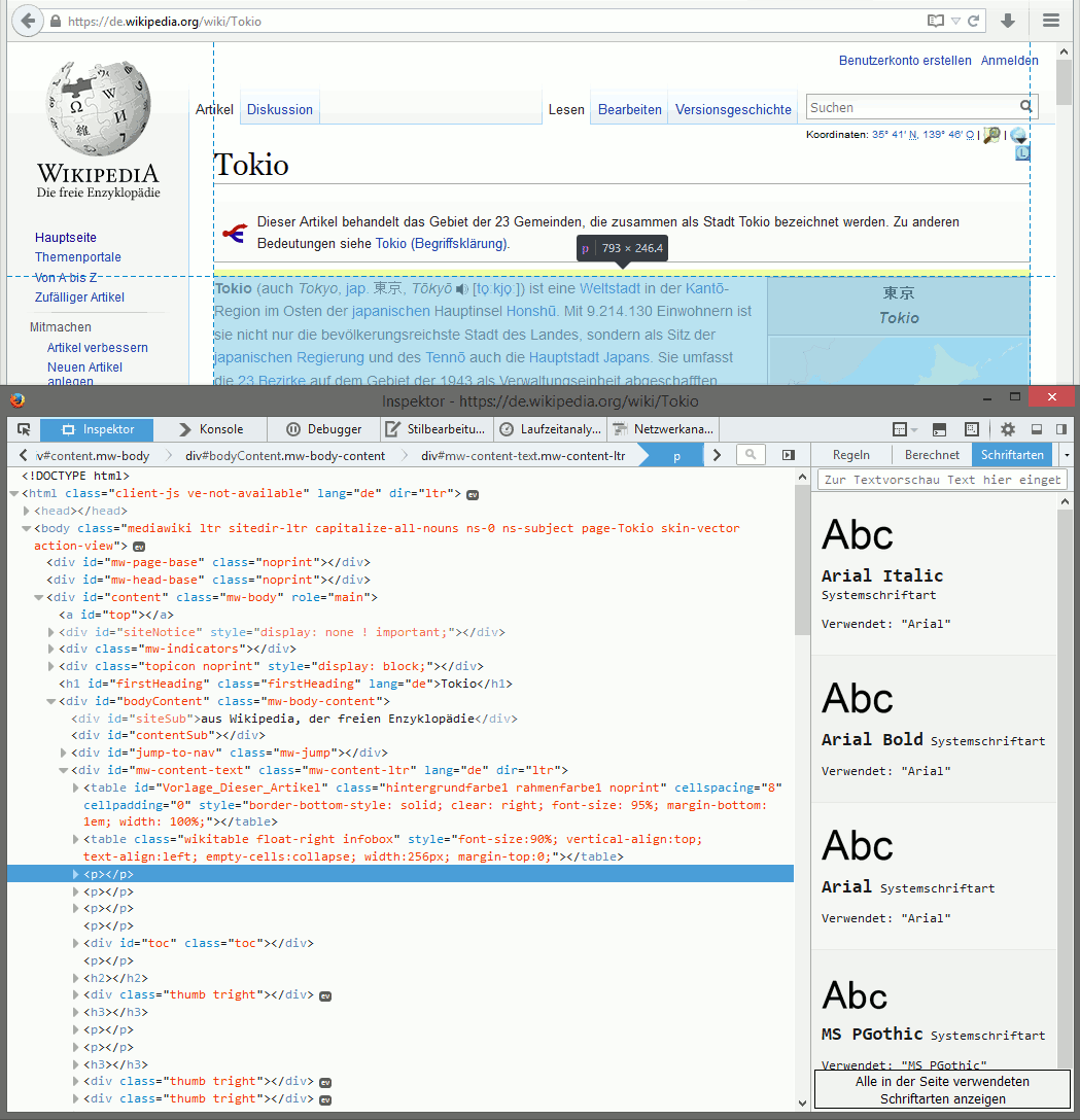 ich möchte wissen, welche Schriftart (mit welchen Einstellungen/Formatierungen) in Wikipedia in den Artikeln verwendet wird.